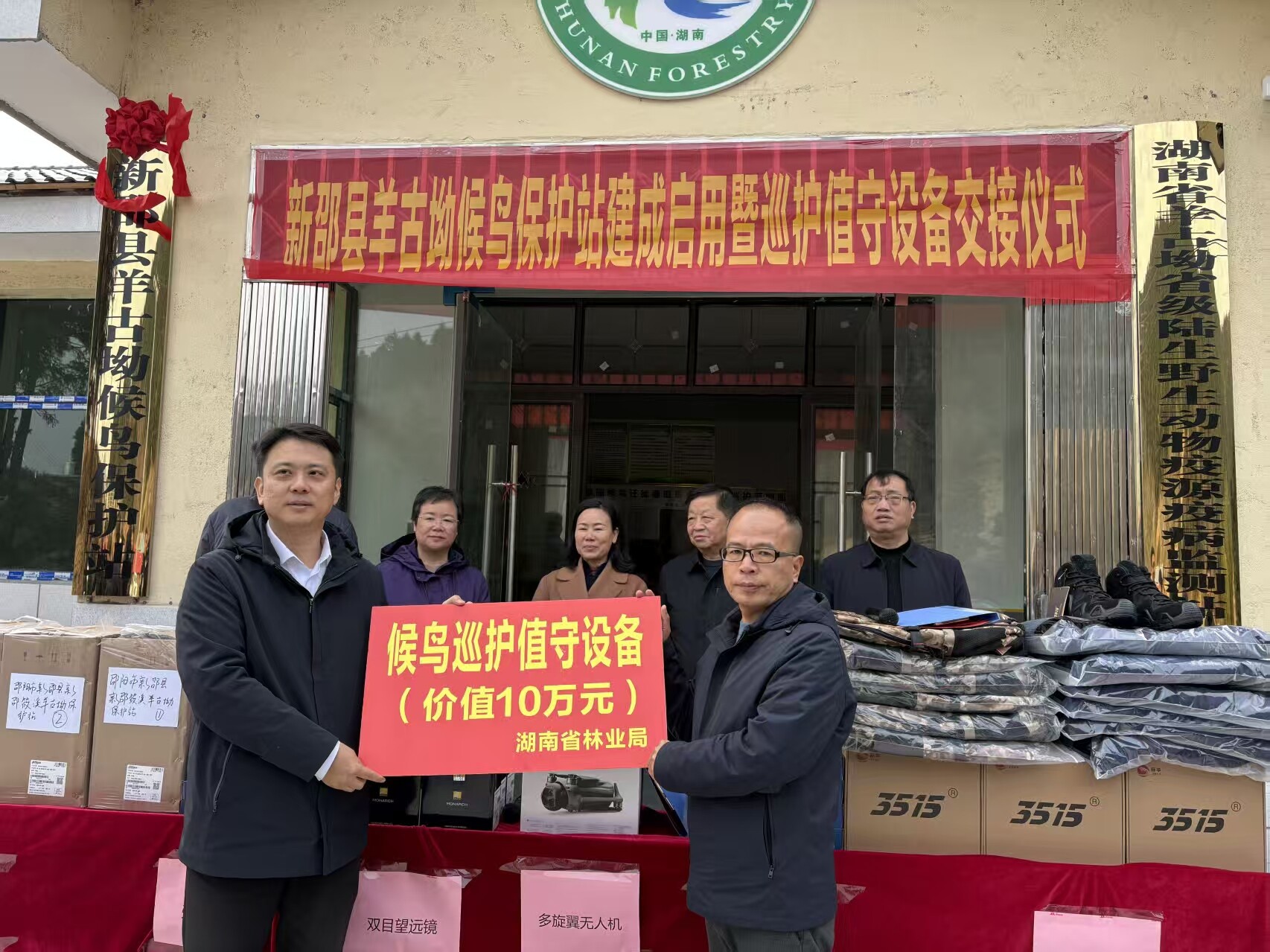 新邵新闻网12月31日讯 12月30日上午,新邵县羊古坳候鸟保护站建成启用暨巡护值守设备交接仪式在龙溪铺镇中源村举行。省、市、县林业部门,保护站巡护人员,候鸟迁徙通道村代表及新邵县生态保护志愿者协会代表到场见证,新邵县候鸟守护者终于有了属于自己的“家”。