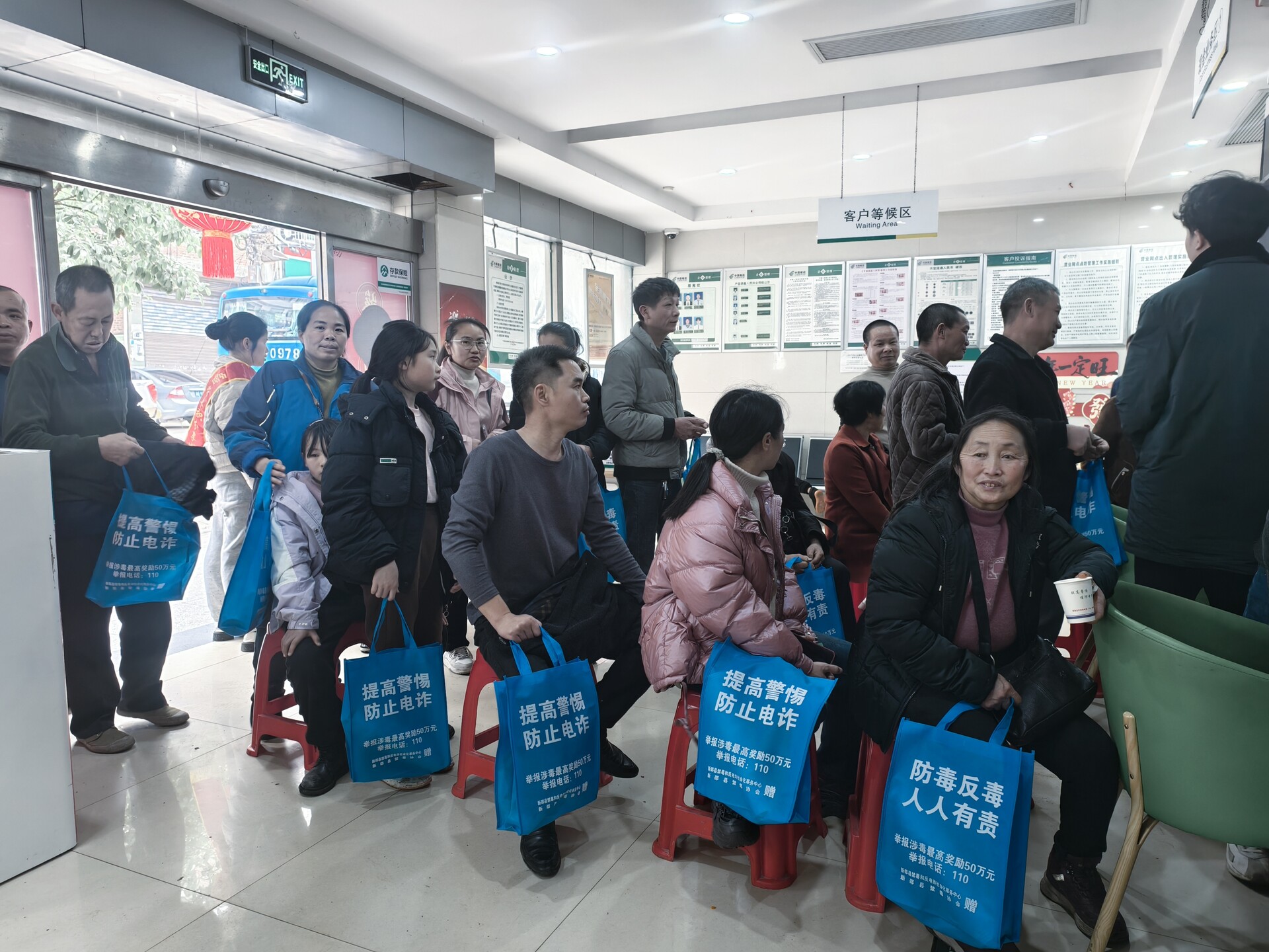 活动依托邮政银行人流密集的厅堂优势,工作人员在等候区、业务办理窗口设立宣传点位,向前来办理业务的返乡务工人员、老年客户发放宣传资料,现场讲解新型毒品识别技巧、寄递渠道禁毒安全知识,以及当前高发的电信网络诈骗典型手段。工作人员结合真实案例,用通俗易懂的语言提醒大家不轻信、不透露、不转账,提高警惕,守好“钱袋子”。