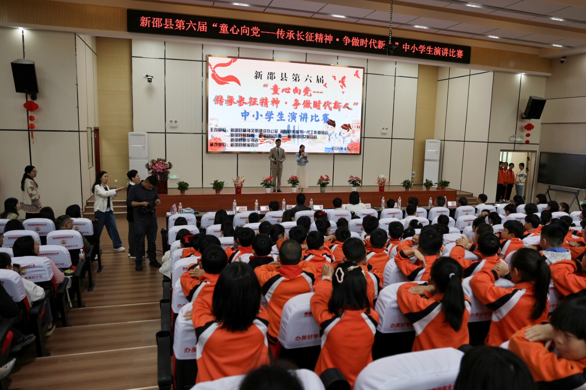 新邵新闻网4月17日讯(记者 孙咏梅 张海兵 通讯员 刘纪新)4月17日,新邵县第六届“童心向党——传承长征精神 争做时代新人”中小学生演讲比赛在酿溪镇第四完全小学举行。经过全县各乡镇、学校层层选拔,来自全县中小学的42名优秀选手齐聚一堂,以青春之声致敬长征精神,展现时代新人风采。