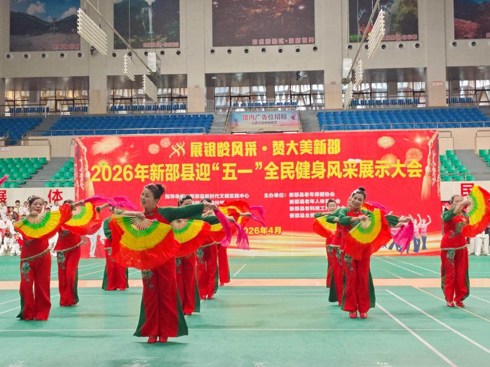 新邵新闻网4月26日讯(记者 石银子)为迎接“五一”国际劳动节,进一步推动全民健身事业深入发展,4月25日上午,2026年新邵县迎“五一”全民健身风采展示大会在新邵体育馆火热举行。来自全县21支群众文体团体的数百名中老年健身爱好者齐聚一堂,用热情与活力展现了新时代银龄群体的精神风貌。
